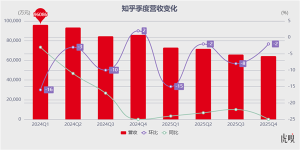 AI 热浪一波接一波冲刷着互联网,风光不再的知乎,即便递上最新财报也鲜少引发市场讨论了。 3 月 25 日,知乎发布 2025 年第四季度及全年业绩报告,堪称上市以来具有里程碑意义的转折点:2025 年全年经调整净利润 3790 万元,首次实现全年非公认会计准则(Non-GAAP)盈利。 但撕开盈利的光鲜外壳,财报核心数据却难掩颓势:2025 年知乎全年营收 27.5 亿元,较 2024 年下滑