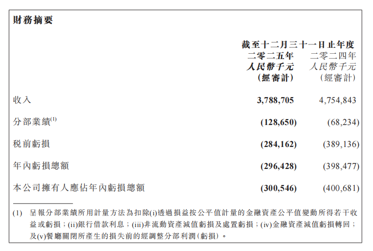 本文来自微信公众号: 职业餐饮网 ,作者:小鱼,原文标题:《五年亏了15亿!呷哺去年关店109家,“换血”重生,胜算几何?》“火锅第一股”又亏了!近日,呷哺集团交出了2025年成绩单:全年实现营收37.89亿元,同比下滑20.3%;净亏损2.96亿元,同比收窄25.6%。这已经是呷哺第五年亏损了,累计亏损已超15亿!市值也从巅峰期的294亿港元,跌到如今的4.72亿港元。为了给经营“减负”,去年呷